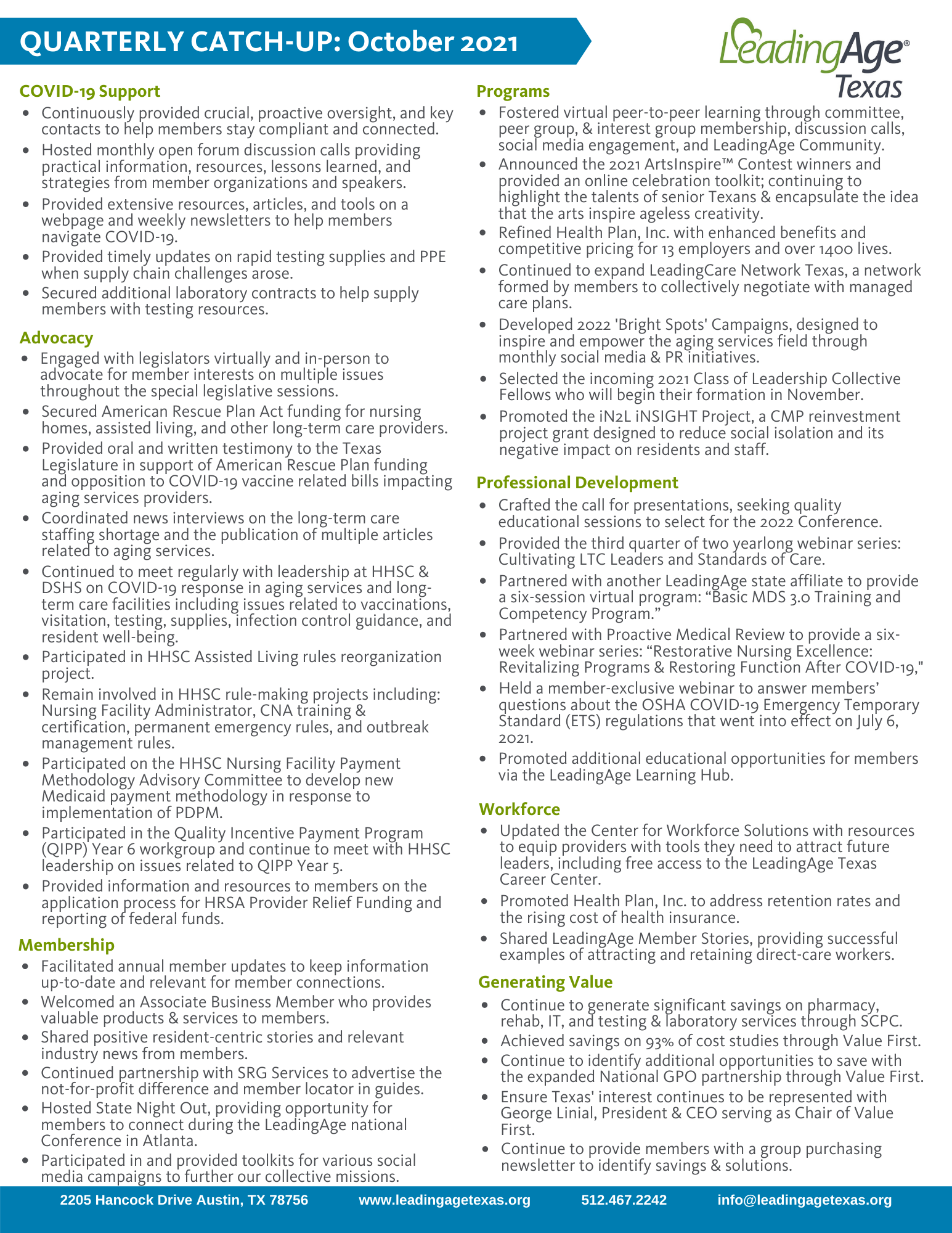 Click here to read an overview of our work for you in the third quarter of 2021.