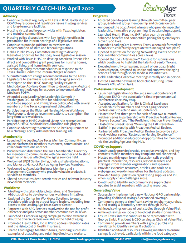 Click here to read an overview of our work for you in the first quarter of 2022.